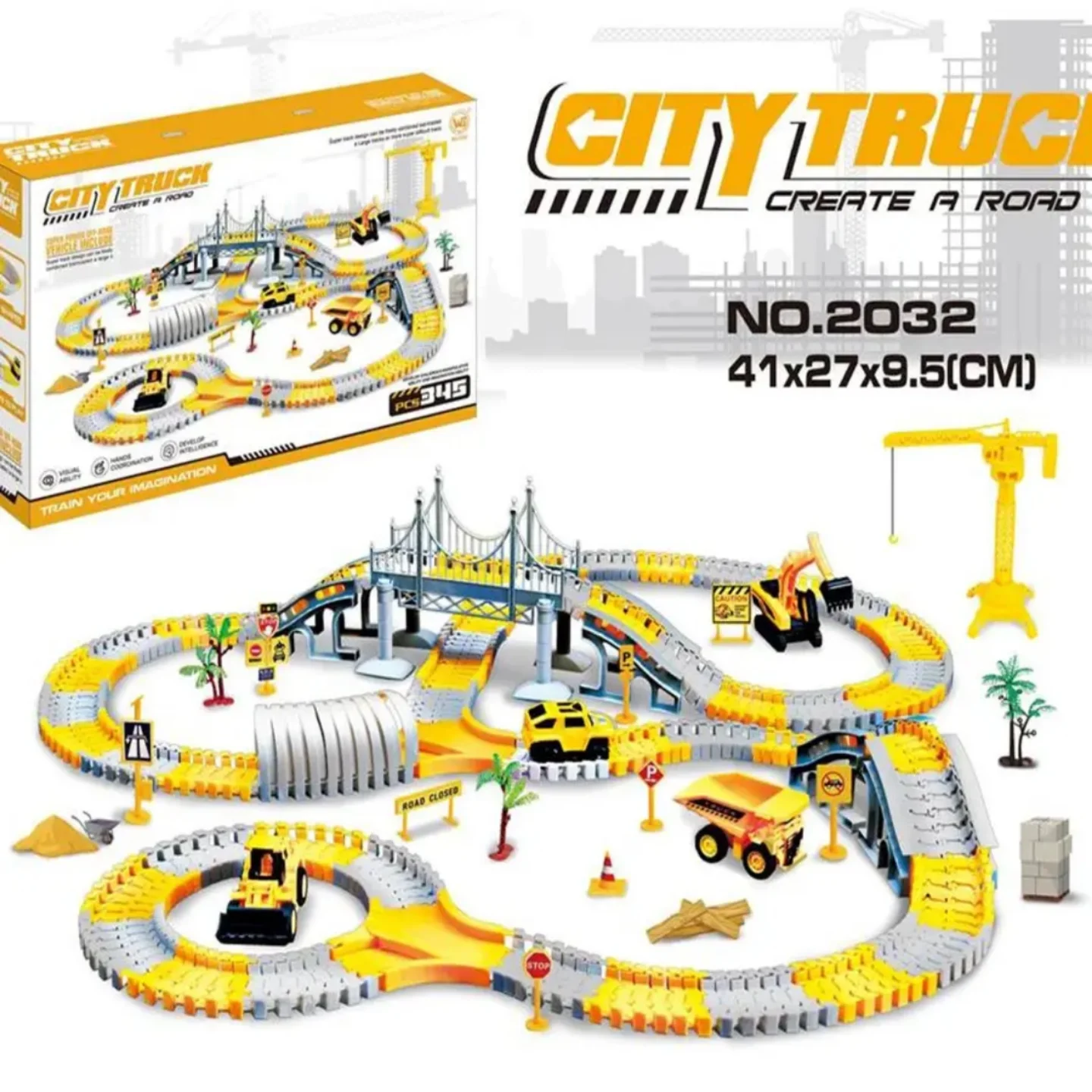 Magična građevinska staza 345 delova. Staza se sastoji od čak 345 delova koje se mogu sklapati po želji. Set sadrži dodatke za kompletno gradilište i ludu zabavu!